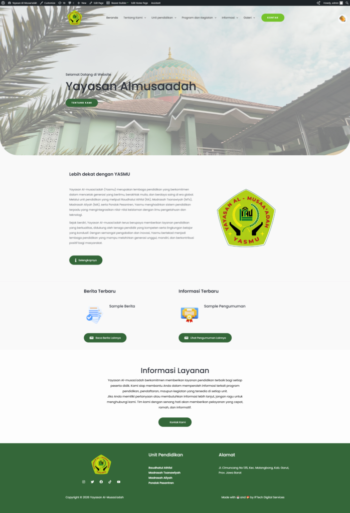 Website ini diharapkan dapat menjadi media informasi terpercaya terkait profil, kegiatan, program pendidikan, serta layanan yang tersedia di lingkungan Yayasan Almusaa’adah.